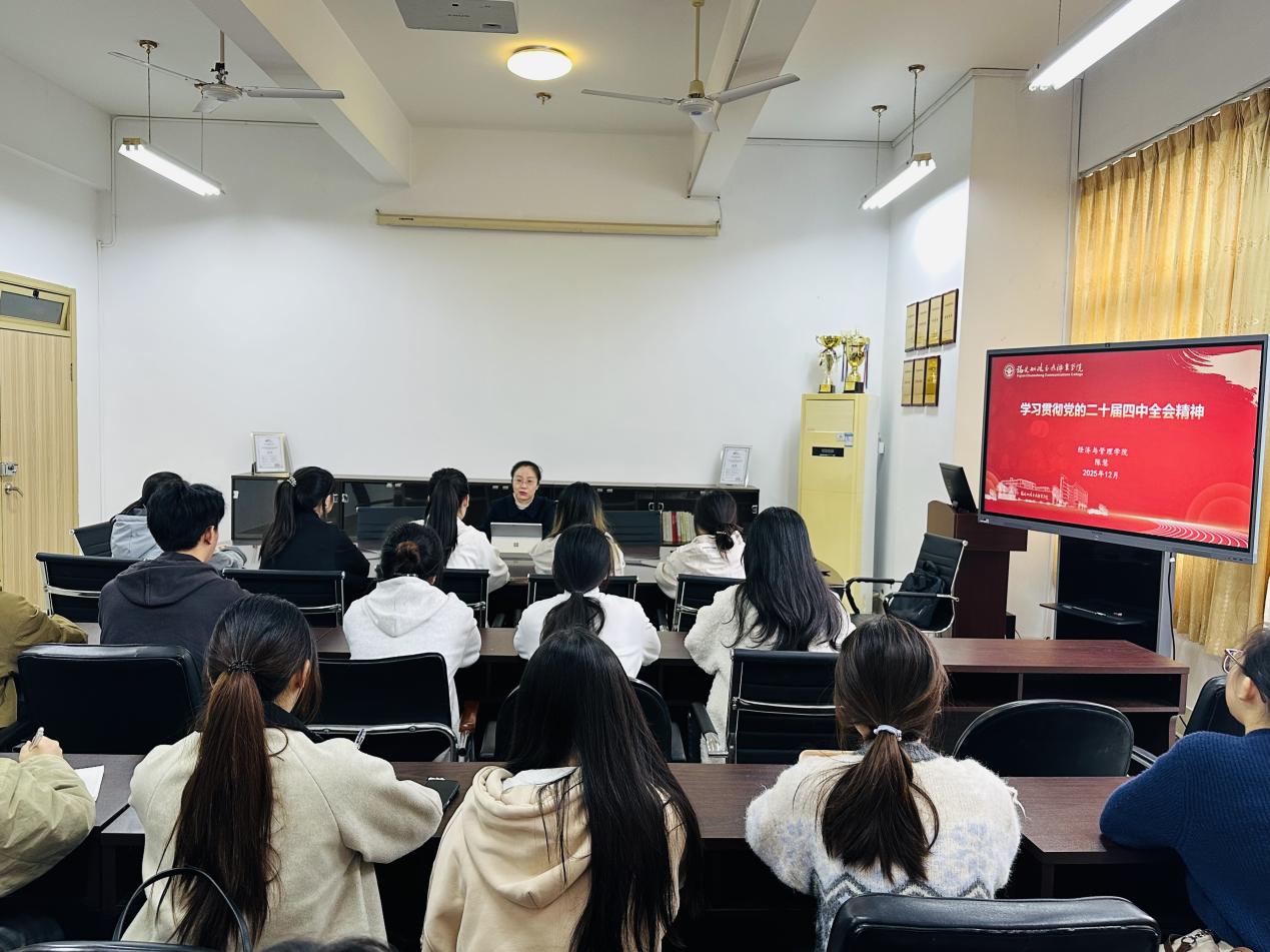 12月17日,經(jīng)濟(jì)與管理學(xué)院黨總支書記陳慧在求實(shí)樓412開(kāi)展黨的二十屆四中全會(huì)精神宣講,推動(dòng)全會(huì)精神在學(xué)院師生中入腦入心、走深走實(shí)。此次宣講緊扣全會(huì)精神核心要義,系統(tǒng)解讀了全會(huì)作為關(guān)鍵歷史節(jié)點(diǎn)召開(kāi)的重要意義,闡釋了為“十五五”時(shí)期經(jīng)濟(jì)社會(huì)發(fā)展擘畫的宏偉藍(lán)圖,以及《中共中央關(guān)于制定國(guó)民經(jīng)濟(jì)和社會(huì)發(fā)展第十五個(gè)五年規(guī)劃的建議》這一中國(guó)式現(xiàn)代化建設(shè)綱領(lǐng)性文件的核心內(nèi)涵。