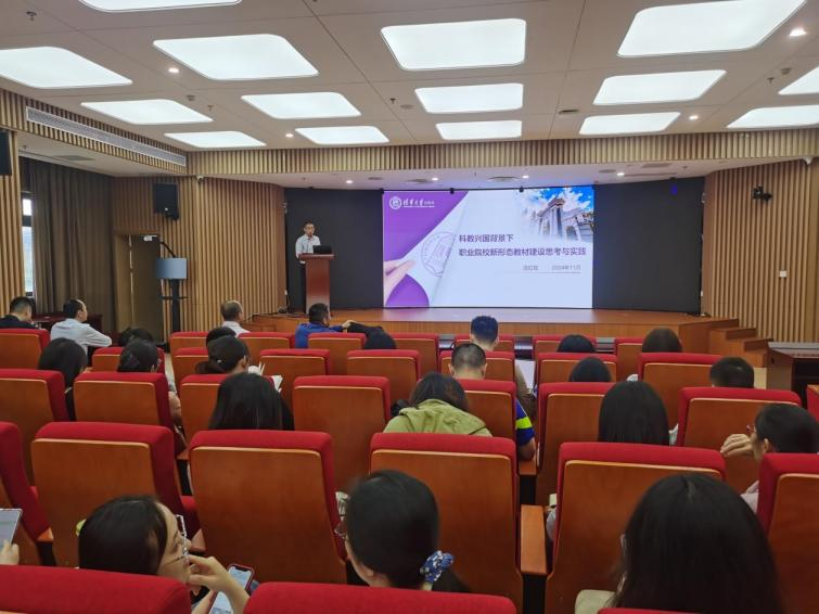 為持續(xù)推進數字教材建設工作,提升教師數字教材建設能力,推進學校教材建設高質量發(fā)展,2024年11月13日上午,我校在福船園藝新樓334報告廳舉辦數字教材建設專題講座,特邀清華大學出版社副社長莊紅權作題為“科教興國背景下職業(yè)院校新形態(tài)教材建設思考與實踐”的報告。教務處、規(guī)劃教材主編或團隊成員代表共60多人參會。