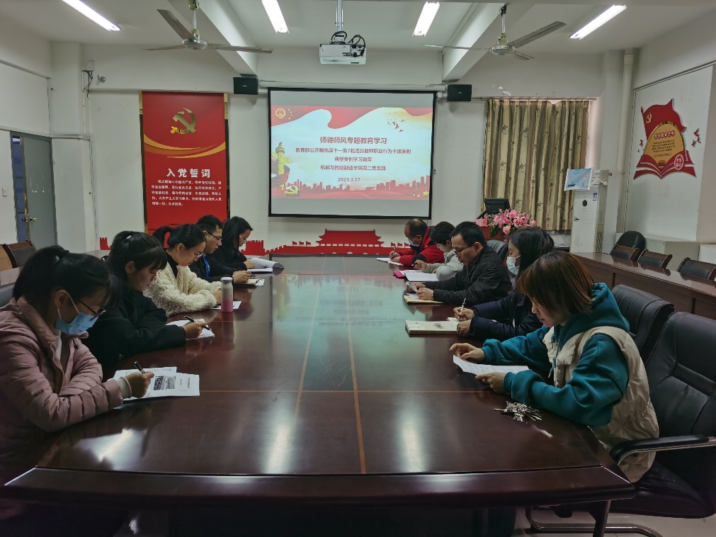 機(jī)械與智能制造學(xué)院第二黨支部開展《教育部公開曝光第十一批7起違反教師職業(yè)行為十項準(zhǔn)則典型案例》學(xué)習(xí)教育活動。