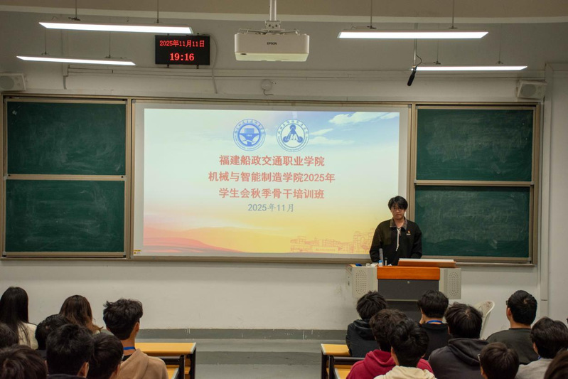 為深入學(xué)習(xí)貫徹黨的二十屆四中全會精神,落實(shí)習(xí)近平總書記關(guān)于教育、科技、人才工作的重要指示批示精神,筑牢學(xué)生骨干政治根基、提升綜合能力,2025年11月11日,福建船政交通職業(yè)學(xué)院機(jī)械與智能制造學(xué)院在福道園八號樓第一階梯教室啟動秋季學(xué)生骨干培訓(xùn)班第一講。學(xué)院團(tuán)委、學(xué)生會成員及各班級團(tuán)支部學(xué)生骨干代表齊聚一堂,共學(xué)精神、共話使命。