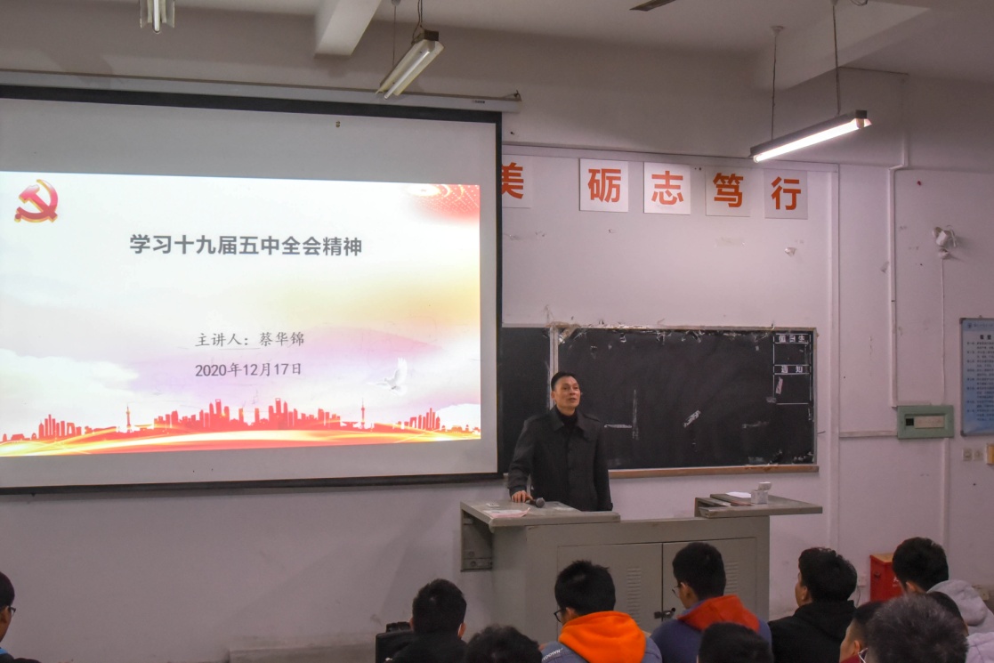 12月17日,學(xué)院黨總支書(shū)記蔡華錦在北區(qū)22號(hào)樓第二階梯教室作學(xué)習(xí)貫徹黨的十九屆五中全會(huì)精神宣講報(bào)告,汽車學(xué)院100多名學(xué)生參加報(bào)告會(huì)。