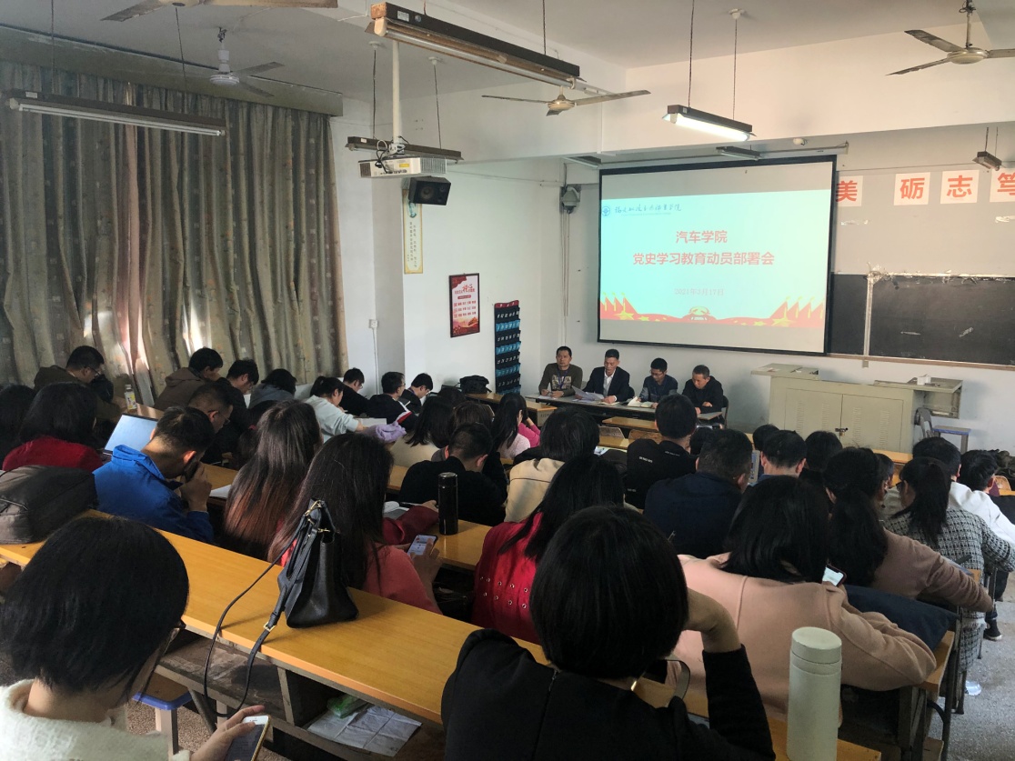 2021年3月17日下午,汽車學院黨總支在22號樓二階召開黨史學習教育動員部署會,學習貫徹習近平總書記在黨史學習教育動員大會上的重要講話精神,傳達了學校關(guān)于全面開展黨史學習教育部署動員大會會議精神。學院領(lǐng)導班子成員、全體黨員等參加會議。