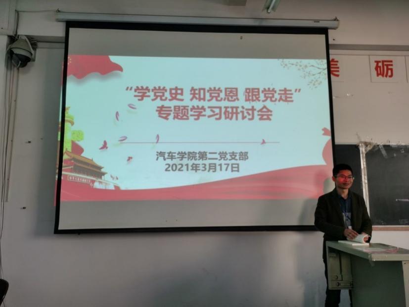 在迎接慶祝中國(guó)共產(chǎn)黨成立100周年之際,為認(rèn)真貫徹落實(shí)習(xí)近平總書記關(guān)于學(xué)習(xí)黨史重要講話精神,以實(shí)際行動(dòng)投身全面建設(shè)社會(huì)主義現(xiàn)代化國(guó)家新征程,進(jìn)一步做好新時(shí)代基層黨建工作,充分發(fā)揮黨史以史鑒今、資政育人的作用,3月17日,汽車學(xué)院第二黨支部開展“學(xué)黨史、知黨恩,跟黨走”主題黨日活動(dòng)。