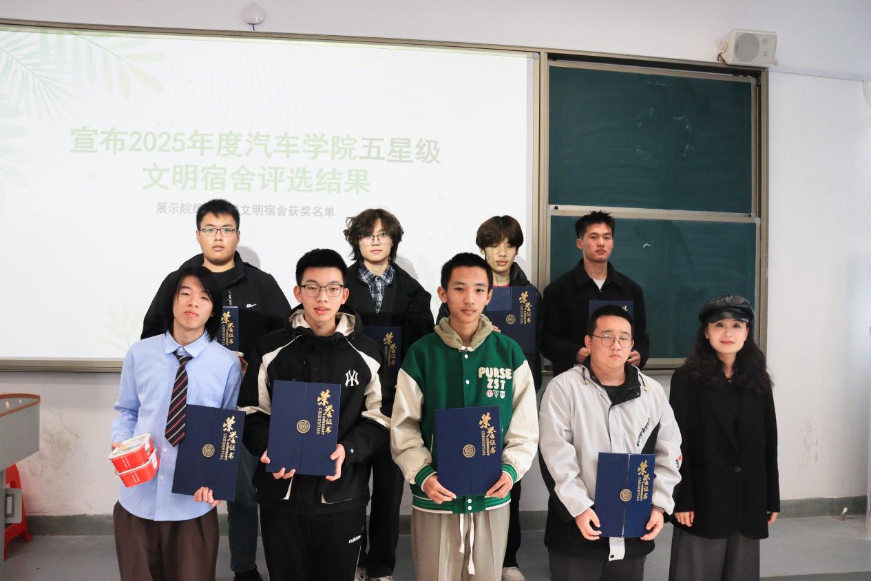 此次表彰大會(huì)不僅樹立了文明標(biāo)桿,更凝聚了建設(shè)和諧校園的共識(shí)。汽車學(xué)院將以此次大會(huì)為契機(jī),讓榜樣力量輻射全院,推動(dòng)更多宿舍成為文明養(yǎng)成的窗口、學(xué)業(yè)進(jìn)步的平臺(tái)、情誼凝聚的家園。未來(lái)進(jìn)一步深化“五育融合”理念,完善宿舍建設(shè)長(zhǎng)效機(jī)制,持續(xù)開展多樣化的特色活動(dòng),推動(dòng)思政教育下沉一線,讓宿舍成為全員參與、全員育人的鮮活課堂,助力汽車學(xué)子們?cè)趦?yōu)良環(huán)境中全面發(fā)展。