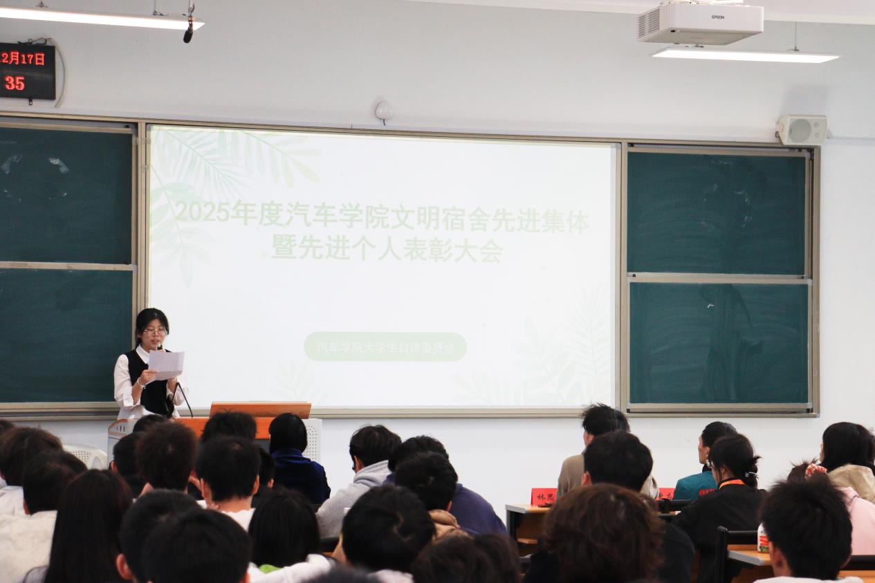 近日,汽車學(xué)院2025年度文明宿舍建設(shè)先進(jìn)集體及先進(jìn)個(gè)人表彰大會(huì)在學(xué)院第四階梯教室圓滿舉行。學(xué)生宿舍管理工作負(fù)責(zé)人、輔導(dǎo)員、兩委學(xué)生干部及獲獎(jiǎng)集體與個(gè)人代表共計(jì)224人齊聚現(xiàn)場(chǎng),以榜樣為鑒,共話文明宿舍建設(shè)新路徑,讓青春正能量在宿舍這片育人陣地中持續(xù)傳遞。