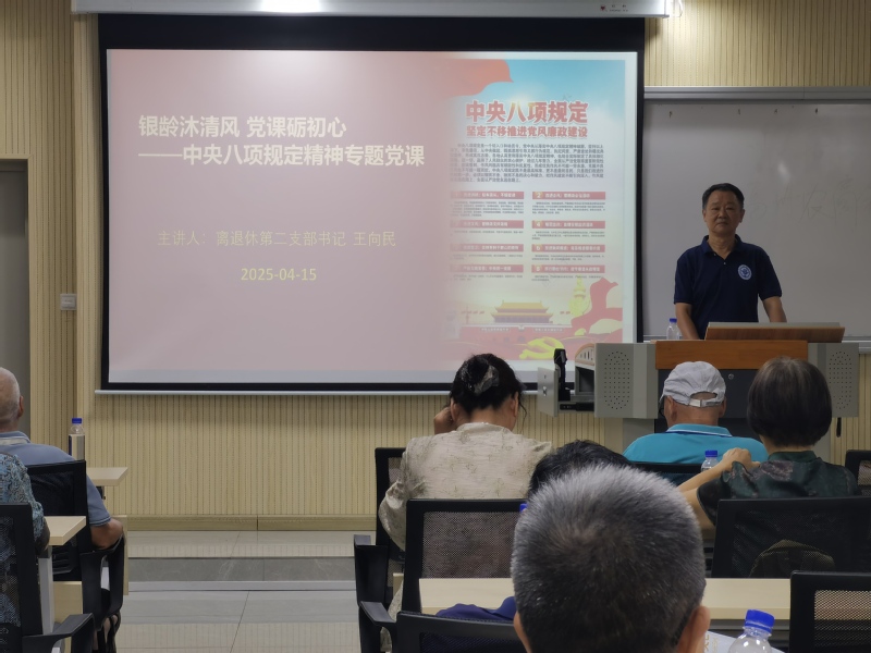 清風(fēng)滿徑潤桑榆,理論宣講入人心。4月15日,中共福建船政交通職業(yè)學(xué)院離退休第二黨支部專題黨課如約而至,黨支部書記王向民以“深學(xué)細(xì)悟中央八項(xiàng)規(guī)定精神,銀齡堅(jiān)守紀(jì)律初心”為主題,用生動案例、鮮活語言,為支部老黨員帶來一場兼具思想深度與情感溫度的黨課,讓中央八項(xiàng)規(guī)定精神在春風(fēng)化雨中浸潤人心。