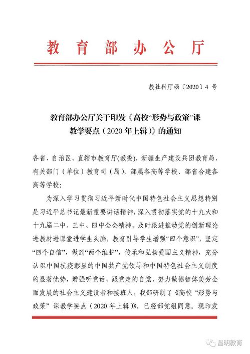 教育部辦公廳關(guān)于印發(fā)《高校“形勢與政策”課 教學(xué)要點(diǎn)(2020 年上輯)》的通知