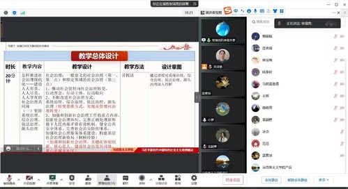 主題是加強(qiáng)民生為重點的社會建設(shè),主講人張瑞青,藍(lán)香清、陸李欽進(jìn)行片段教學(xué),全體教研室教師參與集備。張瑞青老師從教學(xué)重點、教學(xué)難點、學(xué)情分析、教學(xué)建議、教學(xué)總體設(shè)計等幾個方面進(jìn)行分享,并就如何安排授課結(jié)構(gòu)體系,設(shè)置授課問題鏈,以及課堂互動等方面進(jìn)行了充分的討論和科學(xué)的設(shè)置,對完善優(yōu)化豐富該專題結(jié)構(gòu)及內(nèi)容發(fā)揮了巨大作用。