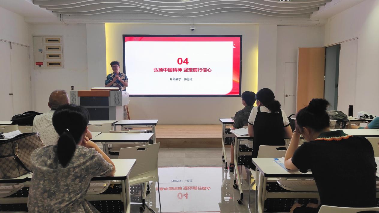 潘倩瀅老師和許思維老師分別針對“文化自信明顯增強”和“弘揚中國精神 堅定前行信心”進行了無生片段教學(xué)。兩位老師教學(xué)設(shè)計精巧,以貼近學(xué)生生活的案例故事生動展示了理論難點,取得了參會教師的一致認可。
