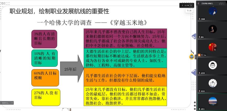 最后,在線(xiàn)的專(zhuān)兼職老師特別針對(duì)本模塊的教學(xué)內(nèi)容展開(kāi)頭腦風(fēng)暴,大家集思廣益,通過(guò)積極的研討和交流,就“如何更有效的開(kāi)展職業(yè)世界探索的課堂實(shí)踐活動(dòng)”等內(nèi)容提出了很多建設(shè)性的教學(xué)建議和方法。李想老師做了總結(jié)發(fā)言。