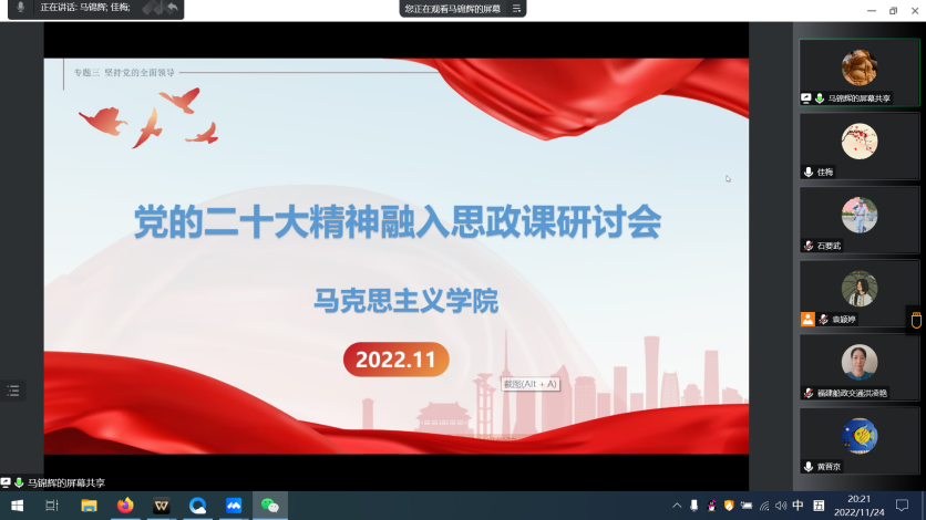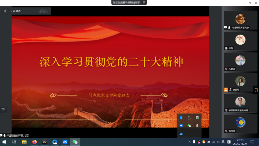 為進(jìn)一步落實(shí)好黨的二十大精神進(jìn)課堂,發(fā)揮思政課落實(shí)立德樹(shù)人根本任務(wù)的關(guān)鍵課程作用,馬克思主義學(xué)院黨總支組織全體教師多次參加教育部組織的理論大講堂宣講報(bào)告會(huì),參加由中共福建省委教工委、福建省教育廳、福建師范大學(xué)主辦的本碩博一體推進(jìn)黨的二十大精神融入思政課研討會(huì)暨學(xué)習(xí)貫徹黨的二十大精神思政課教師集體備課會(huì),組織“黨的二十大報(bào)告內(nèi)容進(jìn)課堂”教學(xué)研討會(huì)和集體備課會(huì),著力提升思政教師在課堂教學(xué)環(huán)節(jié)將報(bào)告新提法新思想融入到當(dāng)前的各門(mén)思政課課堂教學(xué)能力。
