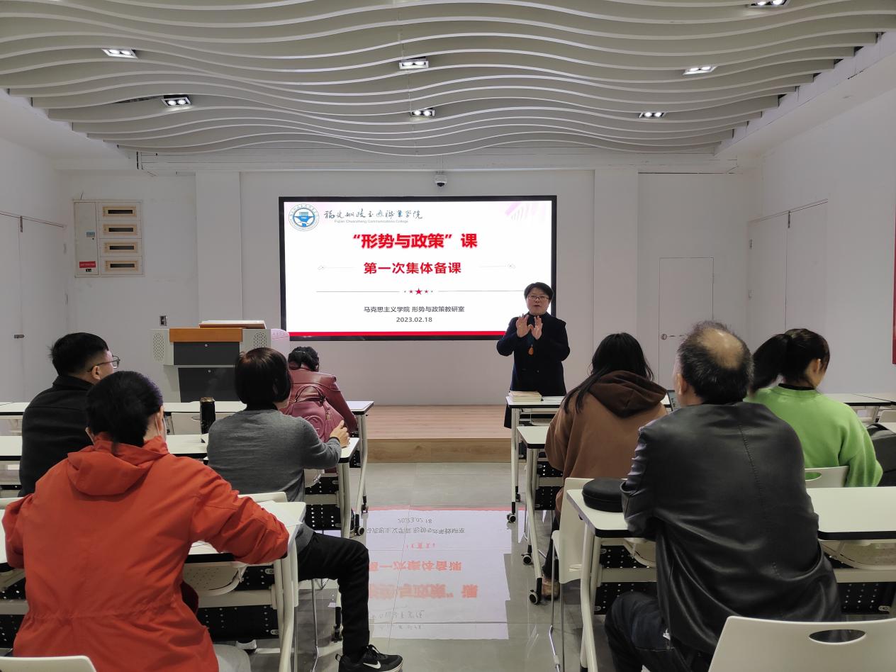 2023年2月19日上午9點,福建船政交通職業(yè)學(xué)院馬克思主義學(xué)院形勢與政策第一次集體備課在圖書館3樓黨建館進行。本次集體備課由教研室張麗珠老師主講,參加此次集體備課的有形勢與政策教研室全體專兼職教師。