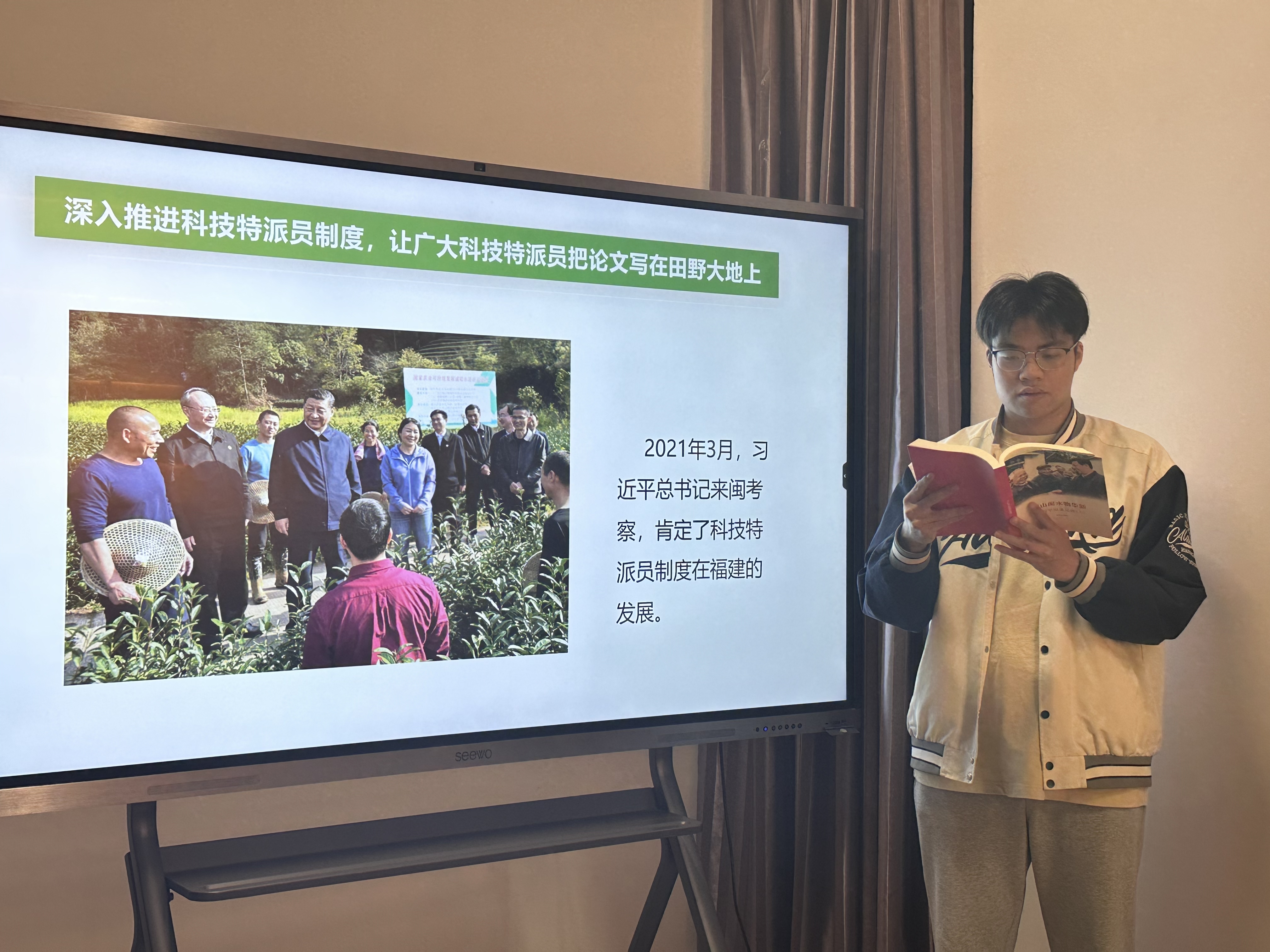 今日,與老師和同學們一起閱讀了《閩山閩水物華新——習近平福建足跡》這本書,我覺得非常有意義。在閱讀習近平總書記在福建17年半的工作經歷中,我覺得作為青年大學生,我們要不斷地加強自身專業(yè)技能和思想道德水平的提升,真正地將論文寫在田野大地上,努力成為有理想、敢擔當、能吃苦、肯奮斗的新時代好青年。