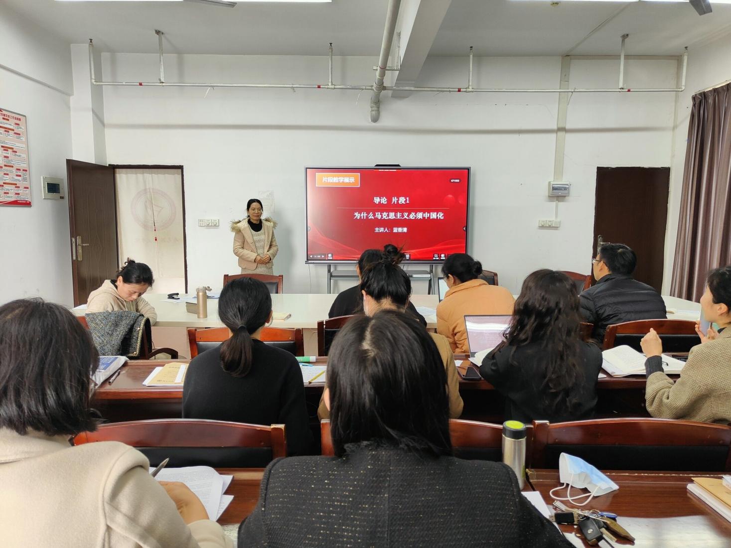 2023年2月19日,馬克思主義學(xué)院“毛澤東思想和中國(guó)特色社會(huì)主義理論體系概論”教研室全體專兼職教師在圖書(shū)館11樓1101室開(kāi)展了“優(yōu)·美”教學(xué)工作坊教研活動(dòng)。本次教研的內(nèi)容是本課程的“導(dǎo)言 馬克思主義中國(guó)化時(shí)代化的歷史進(jìn)程與理論成果”,由江冰老師擔(dān)任主備課人。