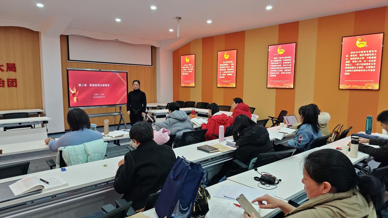 為更好推動習近平新時代中國特色社會主義思想進教材、進課堂、進頭腦,與教學交流,2024年3月1日,馬克思主義學院習近平新時代中國特色社會主義思想概論”教研室舉行了本學期第四次教學工坊活動。本次教研的內容是本課程的“第三章堅持黨的全面領導 ”部分,由江冰老師擔任主講。袁穎婷與藍素瓊老師分別做片段教學。