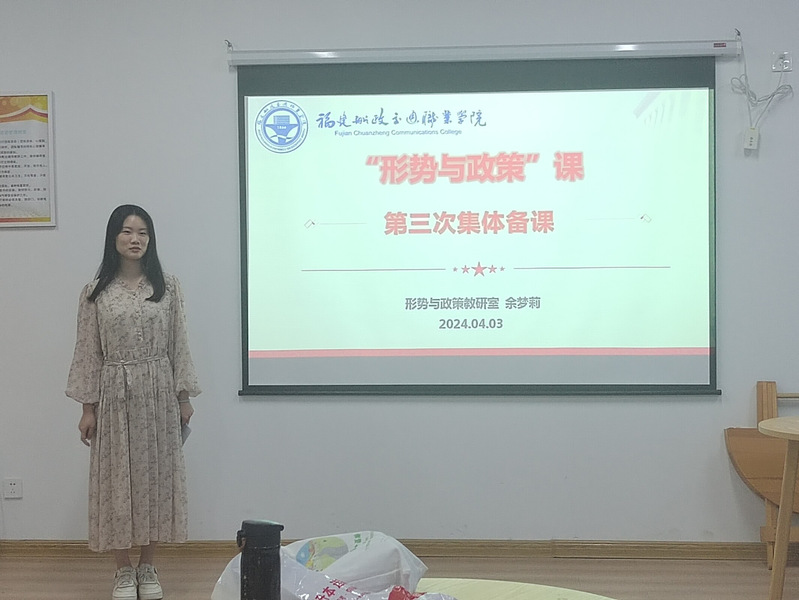 為更好地組織“形勢(shì)與政策”課程教學(xué),推動(dòng)習(xí)近平新時(shí)代中國(guó)特色社會(huì)主義思想進(jìn)教材、進(jìn)課堂、進(jìn)頭腦,2024年4月3日,馬克思主義學(xué)院形勢(shì)與政策教研室開展了本學(xué)期第二次思政課教師“大練兵”暨“優(yōu)·美”教學(xué)工作坊集體備課活動(dòng)。活動(dòng)圍繞本課程的專題“當(dāng)前國(guó)際形勢(shì)與中國(guó)原則立場(chǎng)”進(jìn)行教學(xué)研究。本次集體備課由張麗珠老師擔(dān)任主講,余夢(mèng)莉老師做片段教學(xué)展示。