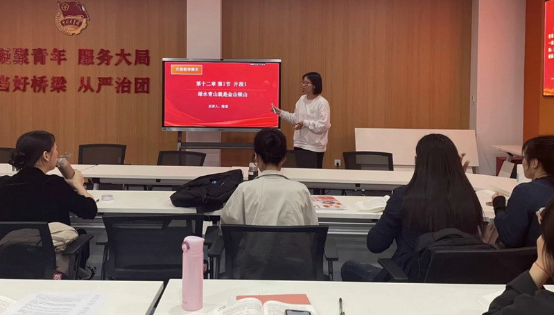 欒靜老師就第十二章“建設(shè)社會主義生態(tài)文明”的授課思路進行分享,同時,她結(jié)合習近平生態(tài)文明思想,對本章節(jié)重難點進行梳理,以清新福建為例,分析為什么進行生態(tài)文明建設(shè)、如何建設(shè)社會主義生態(tài)文明。最后,欒靜老師還分享了在共謀全球生態(tài)文明建設(shè)之路過程中,中國提出的中國智慧的鮮活案例,引導學生明確、保護生態(tài)文明的重要性,并深刻理解中國是全球生態(tài)文明建設(shè)的重要參與者、貢獻者與領(lǐng)導者。