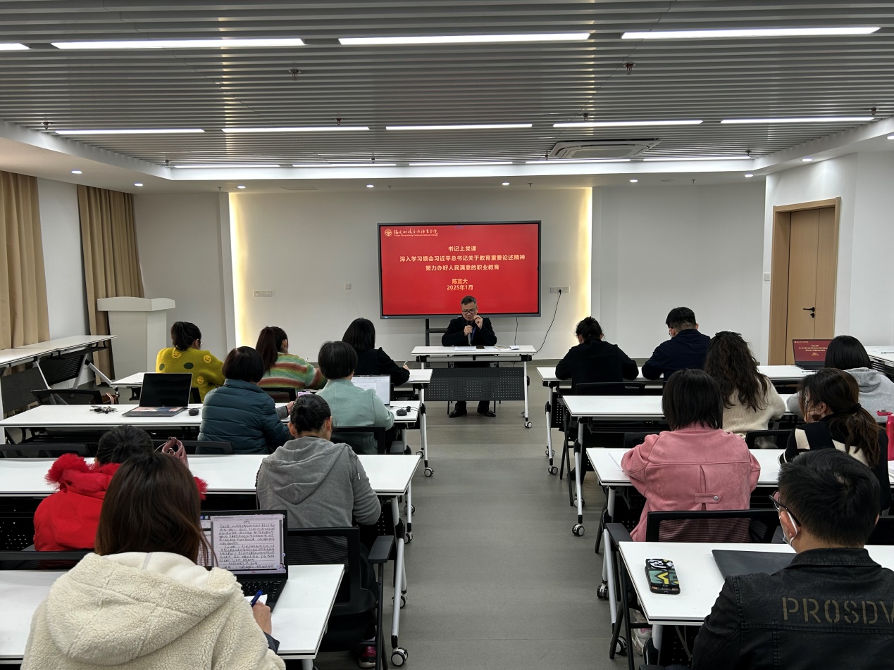 為全面理解和深刻把握習近平總書記關于教育的重要論述,進一步激發(fā)全體思政課教師的教育情懷和使命擔當,1月8日下午,學院黨委書記陳宜大以《深入學習領會習近平總書記關于教育的重要論述 努力辦好人民滿意的職業(yè)育》為題到馬克思主義學院講授專題黨課。馬克思主義學院領導班子成員、全體思政課教師參加黨課學習。