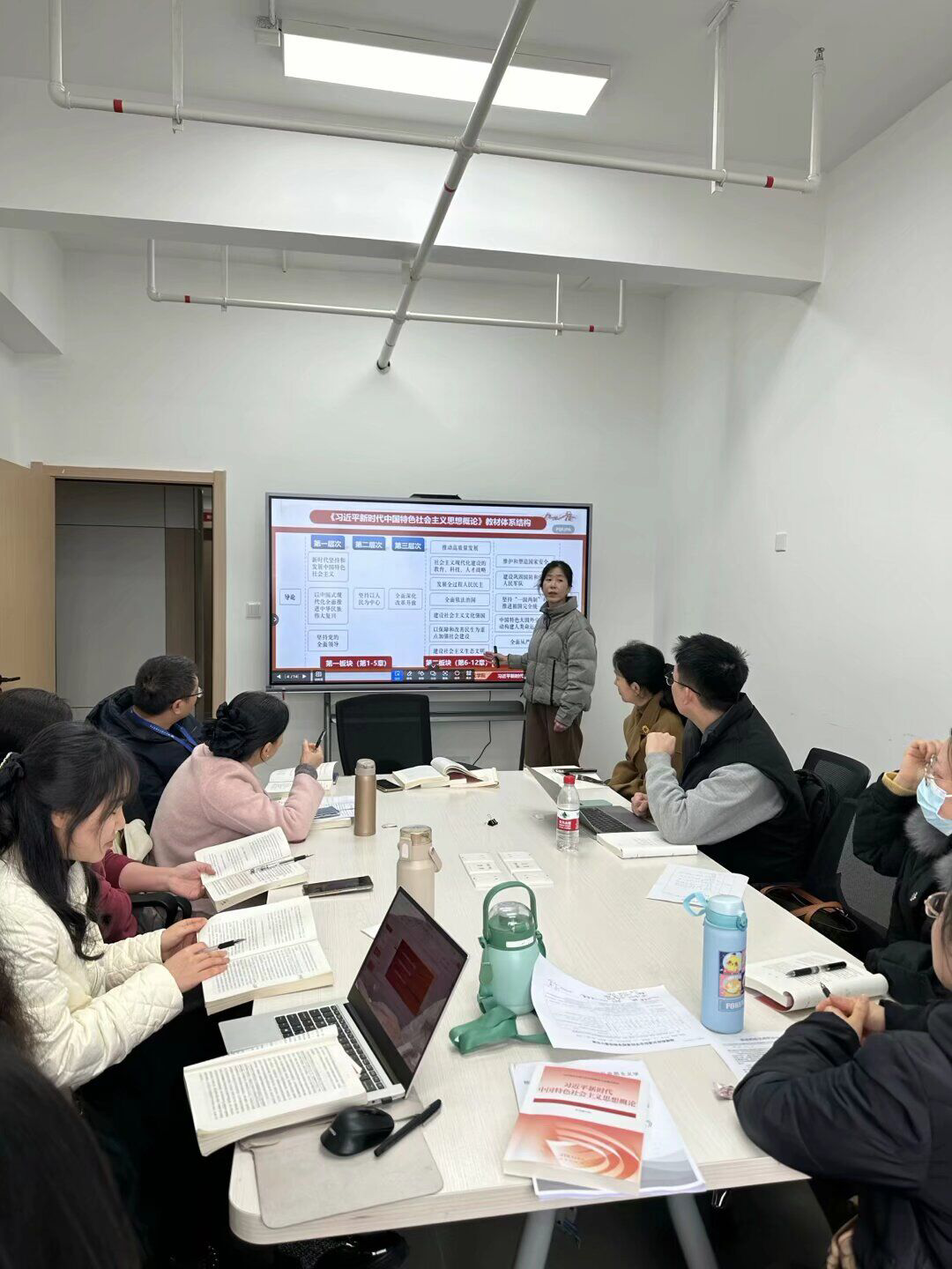 為更好地組織“習(xí)近平新時(shí)代中國(guó)特色社會(huì)主義思想概論”課程教學(xué),推動(dòng)習(xí)近平新時(shí)代中國(guó)特色社會(huì)主義思想進(jìn)教材、進(jìn)課堂、進(jìn)頭腦,推動(dòng)思政課內(nèi)涵式發(fā)展,2月14日,馬克思主義學(xué)院習(xí)近平新時(shí)代中國(guó)特色社會(huì)主義思想概論教研室開(kāi)展了本學(xué)期思政課教師 “優(yōu)·美”教學(xué)工作坊集體備課活動(dòng)。教研活動(dòng)圍繞《習(xí)近平新時(shí)代中國(guó)特色社會(huì)主義思想概論》課程導(dǎo)論及第一章開(kāi)展集體備課。