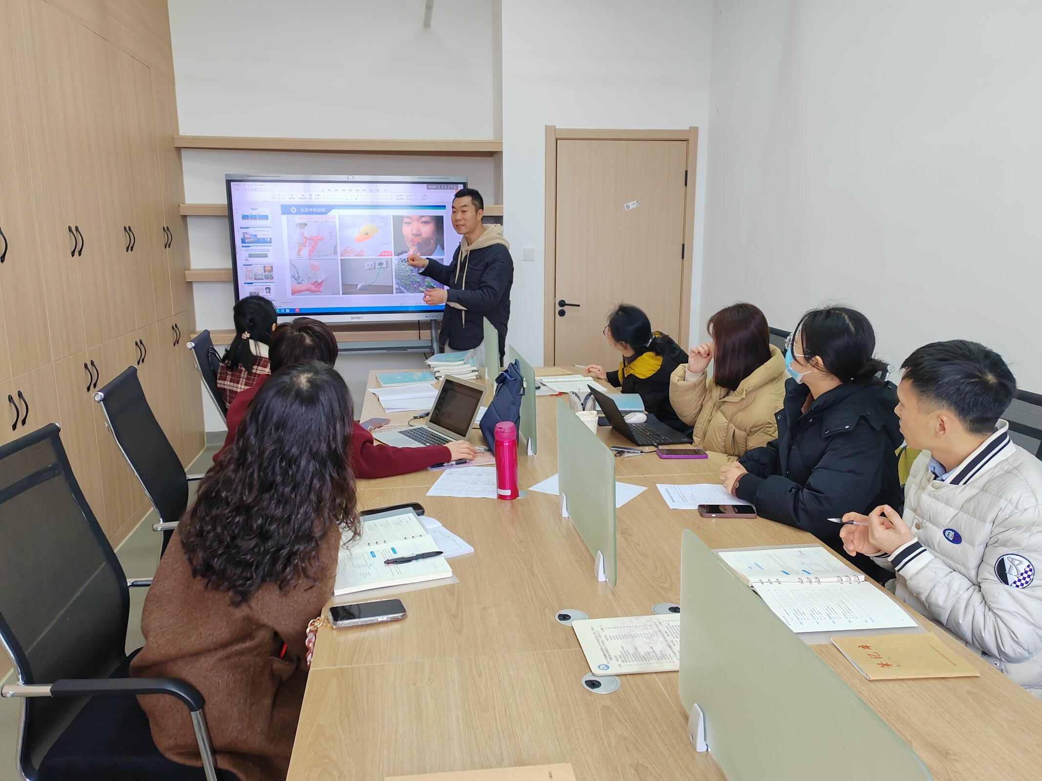 最后教研室主任薛靖老師強調(diào),創(chuàng)新創(chuàng)業(yè)教育是高校人才培養(yǎng)的重要抓手,需立足學生核心素養(yǎng)培養(yǎng),將理論教學與實踐育人深度融合,激發(fā)學生創(chuàng)新思維與創(chuàng)業(yè)潛能?;顒硬扇 爸髦v匯報+集體研討”模式,通過案例分享、互動問答、模擬教學等形式,充分激發(fā)教師團隊的智慧碰撞,形成了兼具理論深度與實踐廣度的教學方案。教研室將以集備活動為突破口,持續(xù)深化教學改革,助力學生成長為兼具創(chuàng)新精神、創(chuàng)業(yè)能力與社會擔當?shù)男聲r代人才。