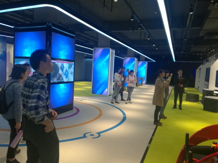 學(xué)員們?cè)诰W(wǎng)龍工作人員的帶領(lǐng)下參觀公司總部園區(qū),通過講解員了解網(wǎng)龍公司的概況、特色及企業(yè)文化。網(wǎng)龍網(wǎng)絡(luò)公司的主樓‘企業(yè)號(hào)’打破建筑常規(guī),以宇宙飛船形態(tài)展現(xiàn)出網(wǎng)龍創(chuàng)意夢(mèng)想和文化。隨后,學(xué)員們進(jìn)入101VR沉浸教室, 通過VR眼鏡穿越海底、太空的地理課,體驗(yàn)置身細(xì)胞中的生物課,VR+教育的生態(tài)教育體系得到了淋漓盡致地展示。在VR游戲體驗(yàn)區(qū),學(xué)員對(duì)這些新奇的游戲躍躍欲試,高空援救、虎豹騎、過山車等游戲借助VR設(shè)備,讓同學(xué)們體驗(yàn)?zāi)欠N身臨其境的感覺。