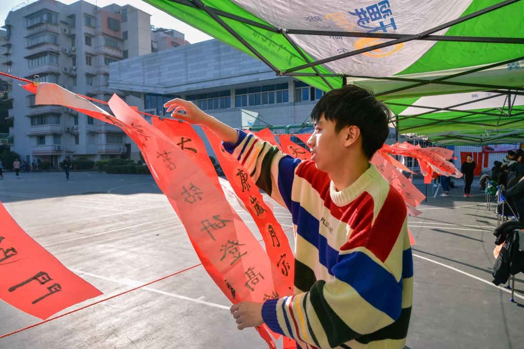 “飛揚(yáng)的紅,肆意的墨,構(gòu)成最誠摯的愿景”。在改革開放40周年之際,也是學(xué)校152周年之際,為倡導(dǎo)“為人民謀幸福,為大眾做貢獻(xiàn)”的精神。2018年12月26號(hào)下午,校團(tuán)委船媒中心在文體中心前舉辦“‘聯(lián)’動(dòng)師生迎元春,祈簽送福滿交院”主題活動(dòng)。