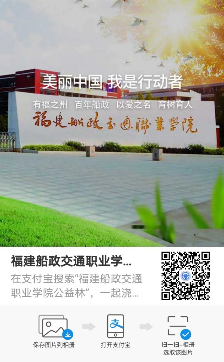2.打開支付寶app,點(diǎn)擊螞蟻森林進(jìn)入公益林板塊,搜索“福建船政交通職業(yè)學(xué)院公益林”