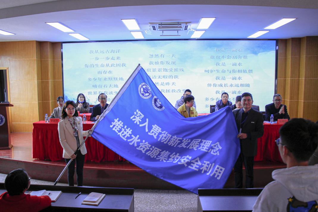 啟動(dòng)儀式上,由青年團(tuán)員代表陳林琳同學(xué)宣讀了《節(jié)水倡議書》,全體同學(xué)起立齊唱歌曲《我是一滴水》。同時(shí),福建船政交通職業(yè)學(xué)院副院長高汝武為安全與環(huán)境學(xué)院舉行了授旗儀式,通過莊嚴(yán)的儀式,向大家鄭重宣告此次活動(dòng)的意義,倡導(dǎo)踐行綠色環(huán)保精神,切實(shí)推進(jìn)水資源集約安全利用。