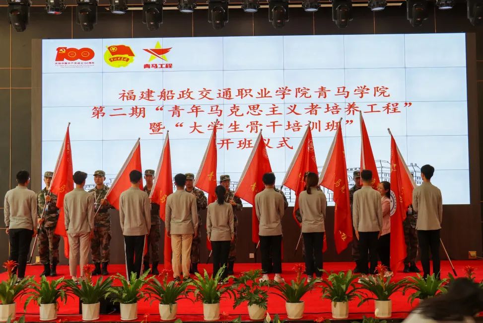 為深入學(xué)習(xí)貫徹習(xí)近平新時代中國特色社會主義思想和習(xí)近平總書記關(guān)于青年工作重要論述,貫徹落實(shí)《中長期青年發(fā)展規(guī)劃(2016—2025年)》和《關(guān)于深入實(shí)施青年馬克思主義者培養(yǎng)工程的意見》, 進(jìn)一步強(qiáng)化青年思想政治引領(lǐng),進(jìn)一步推動“學(xué)黨史、強(qiáng)信念、跟黨走”學(xué)習(xí)教育活動走深走實(shí),為黨培養(yǎng)和輸送更多信仰堅定、能力突出、素質(zhì)優(yōu)良、作風(fēng)過硬的青年政治骨干,2021年5月1日,福建船政交通職業(yè)學(xué)院青馬學(xué)院第二期“青年馬克思主義者培養(yǎng)工程”暨“大學(xué)生骨干培訓(xùn)班”在我校武夷職教園正式開班。