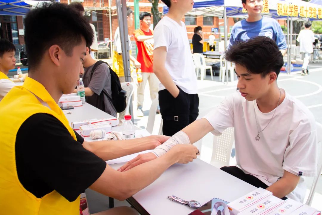 學(xué)習(xí)黨史強信念,我為青年辦實事。在第74個“世界紅十字日”之際,我校紅十字會學(xué)生分會于2021年5月9日在北區(qū)文體中心前籃球場舉辦“關(guān)愛生命、救在身邊”紀念第74個世界紅十字日的宣傳活動,開設(shè)不同活動體驗區(qū),為師生開展應(yīng)急救護知識技能的現(xiàn)場教學(xué);健康義診——視力查詢、口腔牙齒檢查。