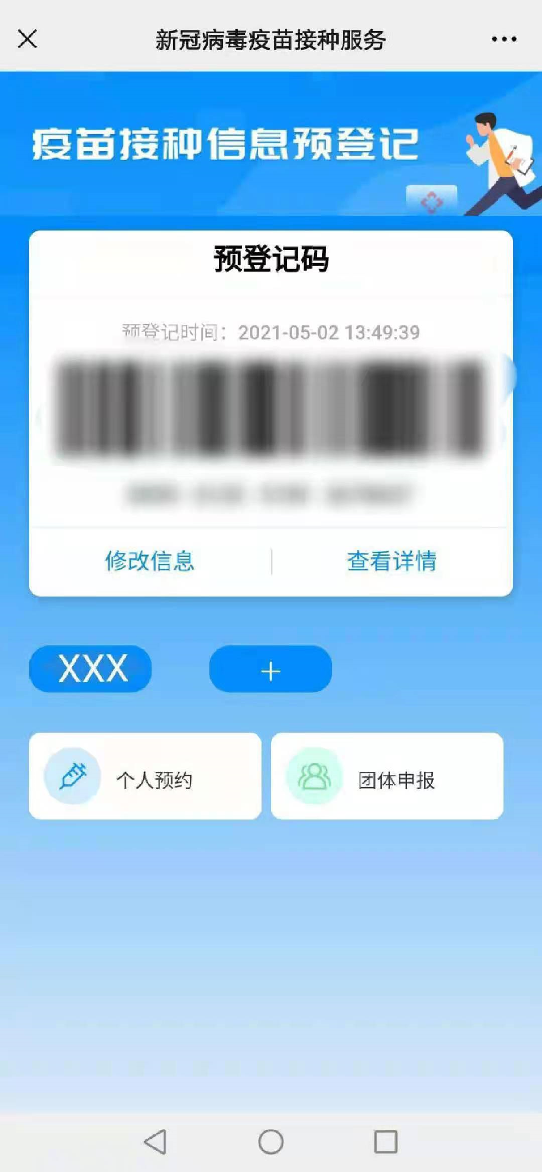 提交后系統(tǒng)會自動生成預登記碼。如果之前信息填寫錯誤,可以點擊“修改信息”進行修改。