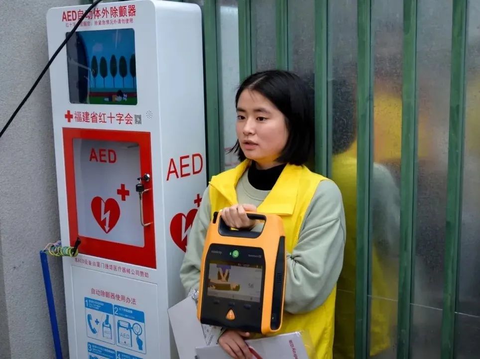 我院在北區(qū)田徑場配置了AED除顫儀,每年定期對同學(xué)們進(jìn)行AED的宣傳科普和操作培訓(xùn)。