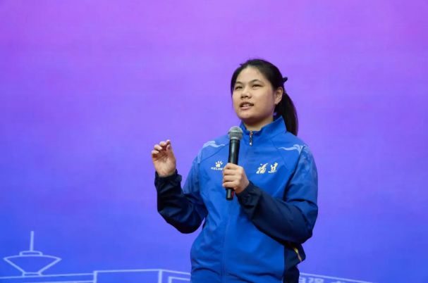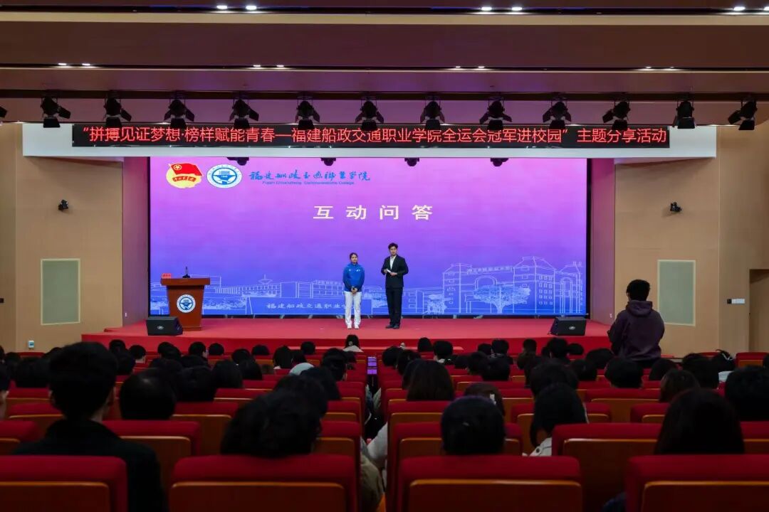 活動在同學(xué)們熱烈的掌聲中拉開帷幕。黃芊芊以“拼搏見證夢想”為主題,娓娓道來自己從晉江少體校起步,歷經(jīng)市隊、省隊,直至入選國家隊的成長軌跡。面對傷病與低谷,她坦言“再堅持一下”的信念是關(guān)鍵;談及天賦、努力與機遇,她真誠分享:“天賦是起點,努力是過程,而機遇,永遠(yuǎn)青睞有準(zhǔn)備的人。”樸實話語中蘊含的力量,深深觸動了在場每一位船政學(xué)子。