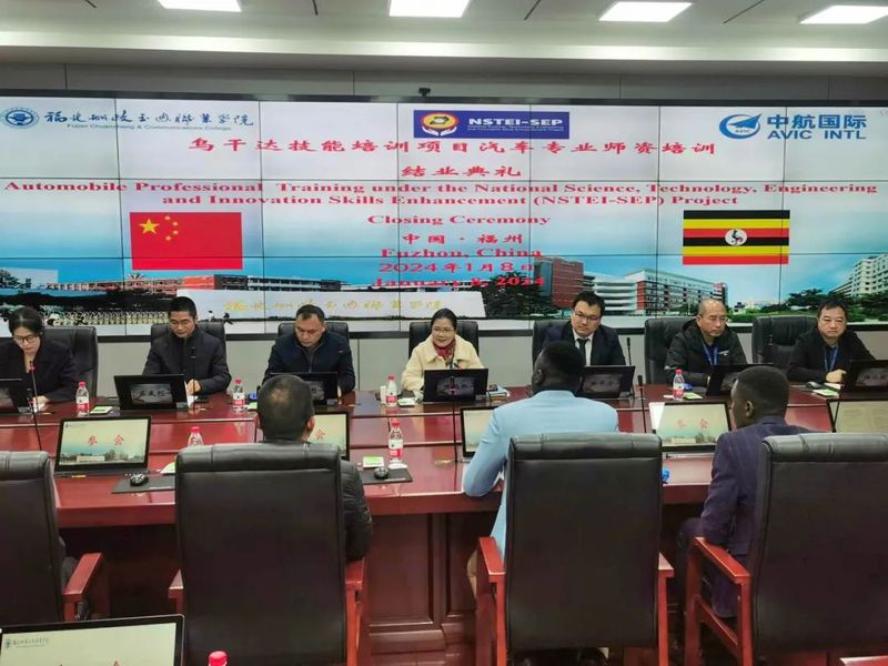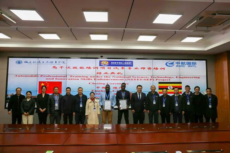 中航國(guó)際成套設(shè)備有限公司職業(yè)教育部部門(mén)經(jīng)理助理徐華京先生,學(xué)院教務(wù)處、科技處、對(duì)外交流中心等部門(mén)負(fù)責(zé)人參加了結(jié)業(yè)典禮,并與全體烏干達(dá)學(xué)員一同合影留念。