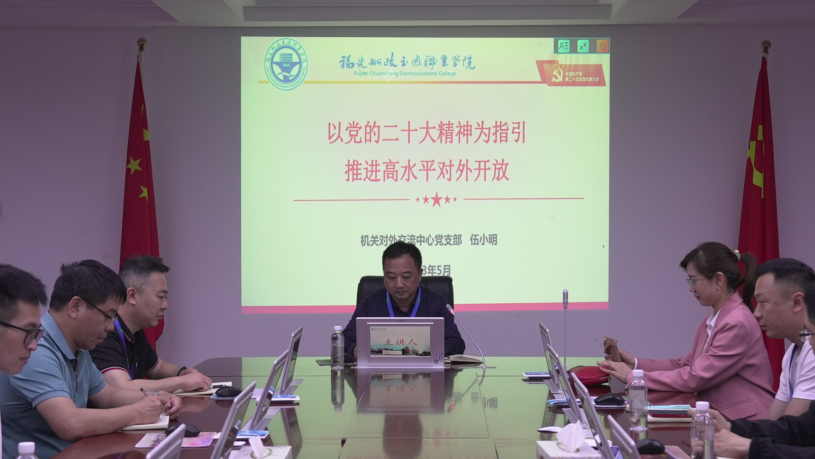 為深入學習貫徹黨的二十大精神,深刻領會、全面把握黨的二十大精神的重大意義和重大部署,切實用黨的二十大精神武裝頭腦、指導實踐,5月24日下午,對外交流中心黨支部書記伍小明講授學習宣傳貫徹黨的二十大精神專題黨課,支部全體黨員聆聽黨課。