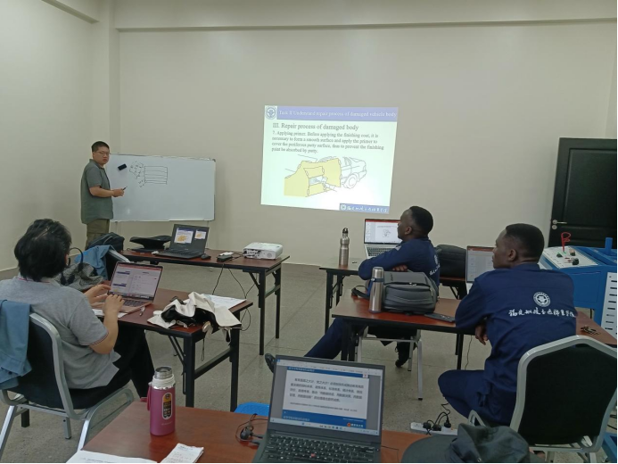 2024年6至11月,學(xué)院職教出海選派的優(yōu)秀師資團隊黃林火、張宇峰兩位教師再次啟程,跨越萬里,從福建到非洲大陸,他們揚帆出海,乘勢而上,持續(xù)向世界輸送“船政模式”職業(yè)教育品牌,圓滿完成了為期半年的烏干達汽車專業(yè)骨干師資培訓(xùn)。團隊因“國”制宜,制定適應(yīng)當(dāng)?shù)卦盒P枰钠噷I(yè)建設(shè)標(biāo)準(zhǔn)、實驗實訓(xùn)條件建設(shè)標(biāo)準(zhǔn),精心設(shè)計汽車發(fā)動機構(gòu)造與維修、汽車底盤構(gòu)造與維修、汽車電氣設(shè)備構(gòu)造與維修等9門課程標(biāo)準(zhǔn),并高質(zhì)量完成680課時的汽車技術(shù)培訓(xùn),輸出了一套國際化汽車維修專業(yè)職業(yè)教育標(biāo)準(zhǔn)。