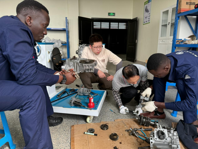 “職教出?!笔锹殬I(yè)教育服務(wù)大國外交與國際產(chǎn)能合作的有效路徑,融匯了東方古老智慧與工匠精神,搭建的是民心相通、文明互鑒的橋梁。汽車學(xué)院在“職教出?!卑l(fā)展路線上始終堅持高質(zhì)量、品牌化、可持續(xù),在發(fā)展目標(biāo)上逐步從“建成”向“辦好”轉(zhuǎn)移。堅定不移的促進中國教育標(biāo)準(zhǔn)、方案、模式和制度的“走出去”與“融進去”,與“一帶一路”共建國家共享中國的職教經(jīng)驗,通過促進技術(shù)進步與人力資源發(fā)展,支持各國增強自主發(fā)展能力,為構(gòu)建人類命運共同體作出積極貢獻。2018年以來,汽車學(xué)院積極踐行“一帶一路”倡議,先后指導(dǎo)肯尼亞、加蓬、科特迪瓦等非洲國家創(chuàng)辦汽車專業(yè)并開展師資培訓(xùn),專門制定適應(yīng)當(dāng)?shù)卦盒P枰钠噷I(yè)建設(shè)標(biāo)準(zhǔn)、實驗實訓(xùn)條件建設(shè)標(biāo)準(zhǔn)、課程標(biāo)準(zhǔn),中英文教材及教學(xué)資源、中法文教材及教學(xué)資源。