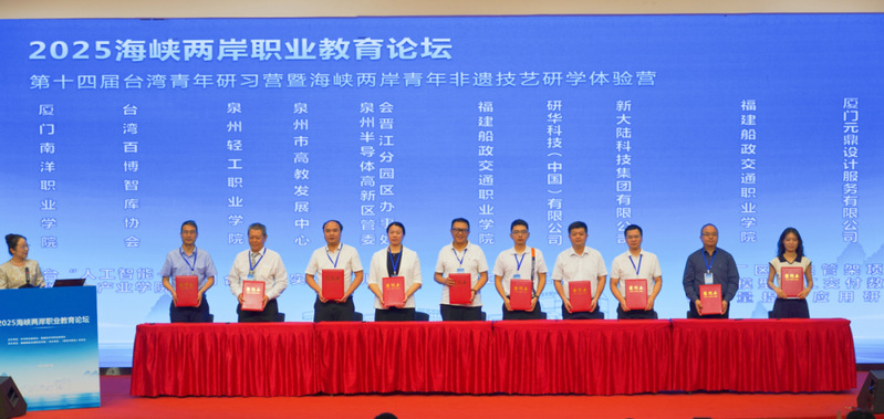 7月15日-17日,2025海峽兩岸職業(yè)教育論壇在福建省福州市成功舉行。此次論壇以“AI賦能職業(yè)教育”為主題,由中華職業(yè)教育社、福建省中華職業(yè)教育社聯(lián)合臺灣多家社會團(tuán)體共同主辦,福建船政交通職業(yè)學(xué)院承辦,《教育與職業(yè)》雜志社協(xié)辦。論壇涵蓋開幕式、揭牌儀式、項(xiàng)目簽約、學(xué)術(shù)報(bào)告、嘉賓對話、文化活動、現(xiàn)場教學(xué)等多項(xiàng)議程,來自兩岸的職業(yè)教育專家、學(xué)者、院校和企業(yè)代表等230余人出席活動。